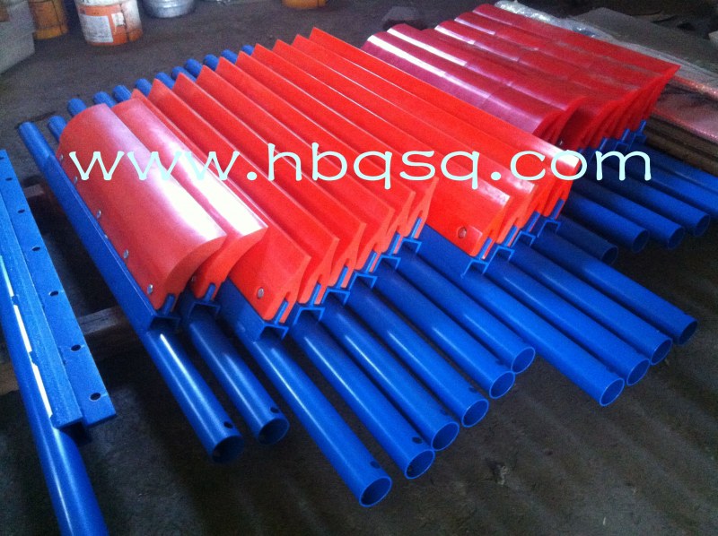聚氨酯清掃器主要作用是清掃運(yùn)輸皮帶表面的附著物,在輸送機(jī)上有著不可忽視的作用,靠皮帶傳動(dòng)的生產(chǎn)線基本都需要靠它來對(duì)皮帶或輸送帶進(jìn)行清掃。 清掃器我國的發(fā)展和起步都比較晚,被引進(jìn)國內(nèi)之后隨著市場和工廠設(shè)備的需求得到了相應(yīng)的開發(fā),現(xiàn)隨著近幾年產(chǎn)業(yè)和清掃器的研發(fā)力度加大,一些企業(yè)產(chǎn)品的質(zhì)量和技術(shù)水平已經(jīng)達(dá)到或接近國際水平 。 帶式輸送機(jī)輸送物料時(shí)若輸送帶上殘留或附著物料或者其他物質(zhì)如果沒有清掃器的協(xié)助這些東西就很容易的能進(jìn)入到輸送機(jī)滾筒或托輥軸承座內(nèi)部使軸承磨損嚴(yán)重、滾筒或托輥表面這樣會(huì)縮短皮帶的使用壽命造成皮帶表面磨損和斷裂。如果給運(yùn)輸設(shè)備配上清掃裝置則能很有效的保護(hù)皮帶以及運(yùn)輸設(shè)備其他的部件能提高設(shè)備的有效使用時(shí)間。所以清掃器的清掃能力對(duì)提高帶式輸送機(jī)的運(yùn)行效率和使用壽命以及減少設(shè)備故障率和降低維護(hù)成本有著至關(guān)重要的作用,膠帶輸送機(jī)必備配件。